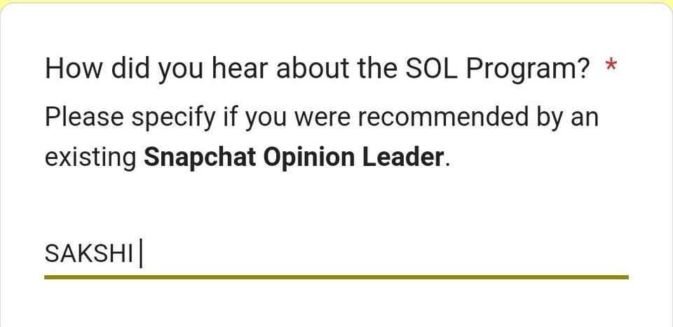 Do not forget to use the Referral Code "SAKSHI" IN THE SECTION HOW DID YOU HEAR ABOUT THE SOL PROGRAM as shown below to be PRIORITISED. (2nd Page)